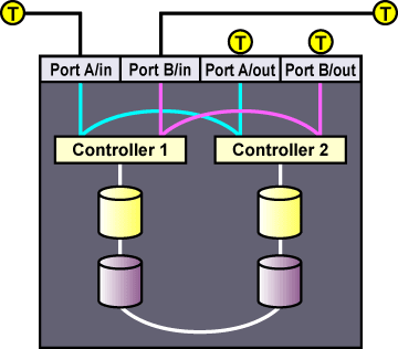 When using a single- or dual-controller RAID array that has multiple host ports and provides simultaneous access to all the shared logical units from the host ports on the storage enclosure, the setup of the single-initiator SCSI buses to connect each cluster node to the RAID array is possible. If a logical unit can fail over from one controller to the other, the process must be transparent to the operating system. Note that some RAID controllers restrict a set of disks to a specific controller or port. In this case, single-initiator bus setups are not possible.