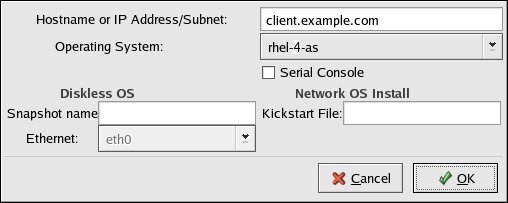 Hostname or IP Address/Subnet — The IP address, fully qualified hostname, or a subnet of systems that should be allowed to connect to the PXE server for installations.