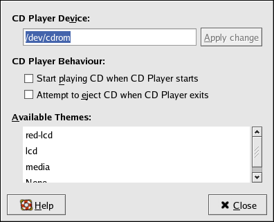 You can edit the track listings for your CDs by clicking the Open track editor button. You can also change the way the application functions by clicking on the Open Preferences button. Here you can set themes for the player as well as set the behavior of the CD-ROM drive when you open or quit the CD Player application.
