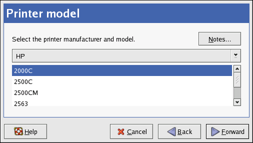 After selecting the queue type of the printer, the next step is to select the printer model.